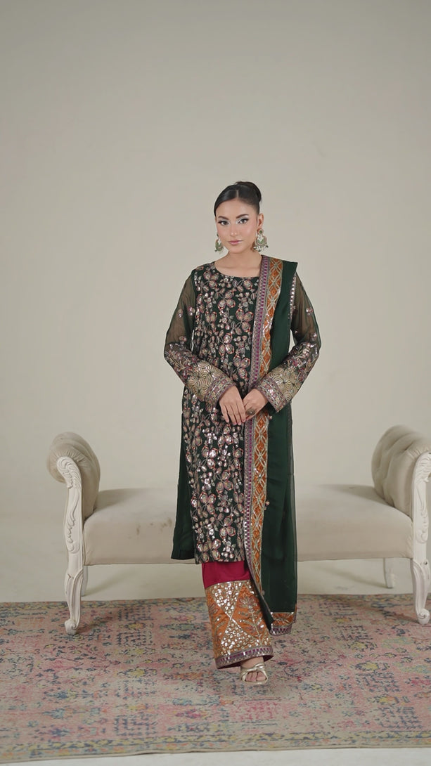 3-Piece Stitched Sophisticated Kai Green Embroidered